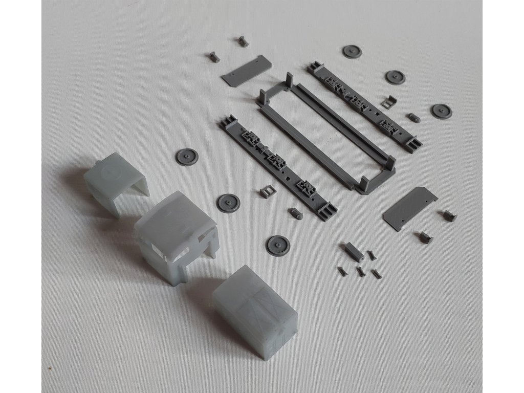 Po produkci T211 nám v nabídce nemůže chybět ani lokomotiva 710 "Rosnička". Model je vyroben kombinací PLA a resinu, kdy kabina a kryty motoru jsou resinové a zbytek je PLA. Základní model je v měřítku H0, ale plánujeme i další měřítka. Součástí balení jsou i tištěná zábradlí, která nejsou patrná fotkách.